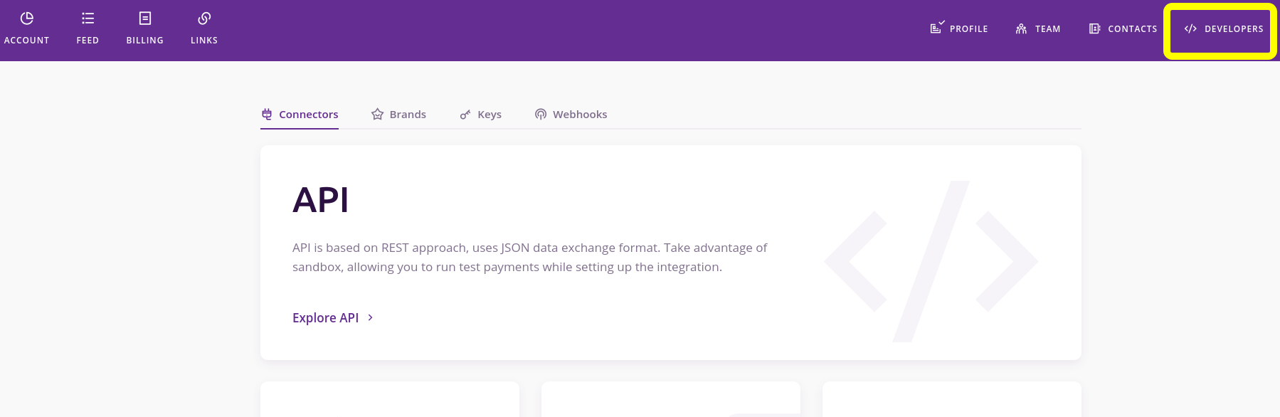 Retrieve the API Keys from the Developers section within your account. Utilize this key as a bearer token in the Authorization header included with each request: **`Authorization: Bearer {{secretkey}}`**